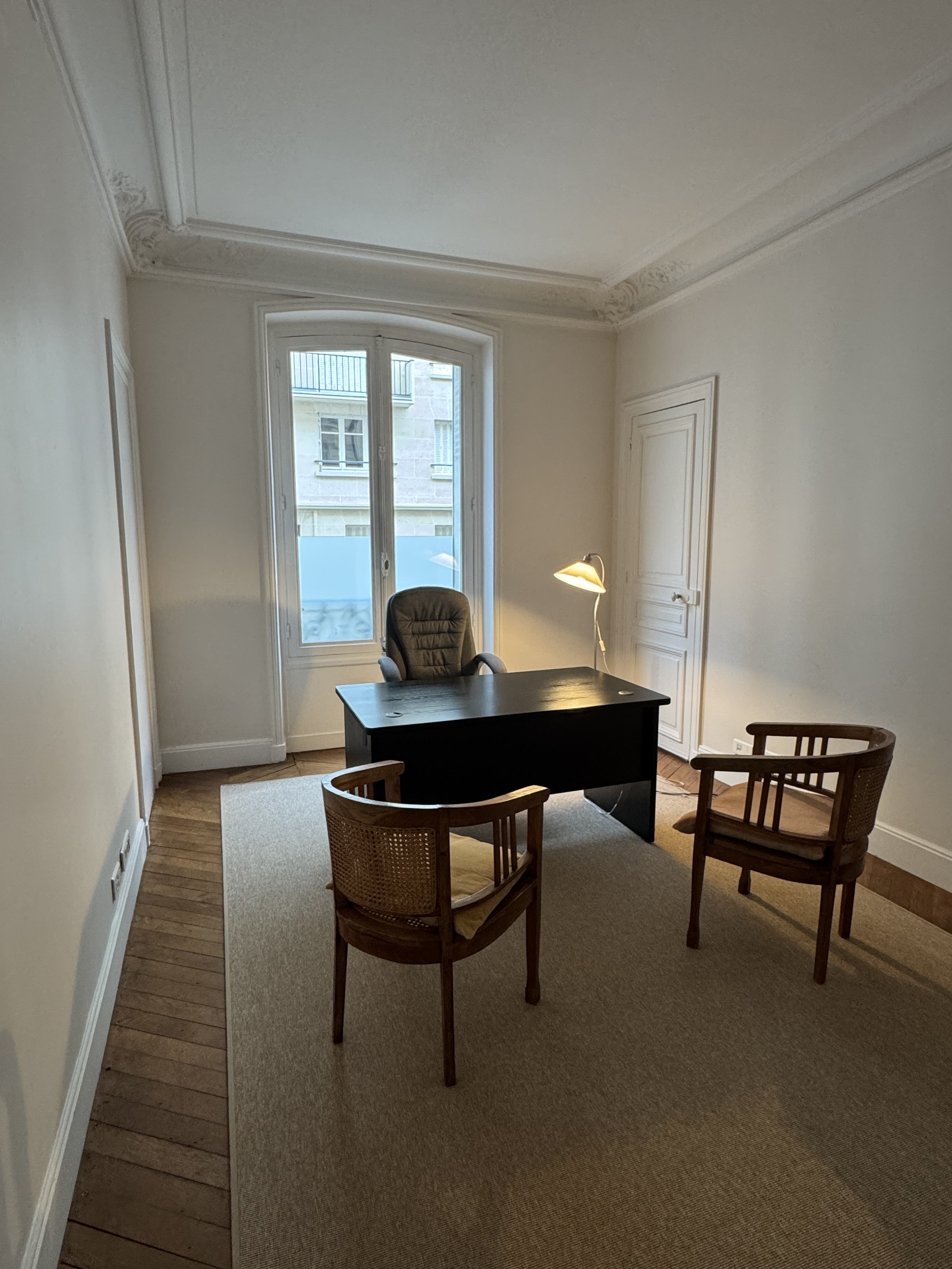 Dans un bel immeuble haussmannien, idéalement situé près du Palais de Justice, au 200 boulevard Malesherbes 75017 Paris, bureau en parfait état de plus de 17 m², avec étagères et tapis, pour un prix mensuel de 1.300 € HT (occupation simple).
