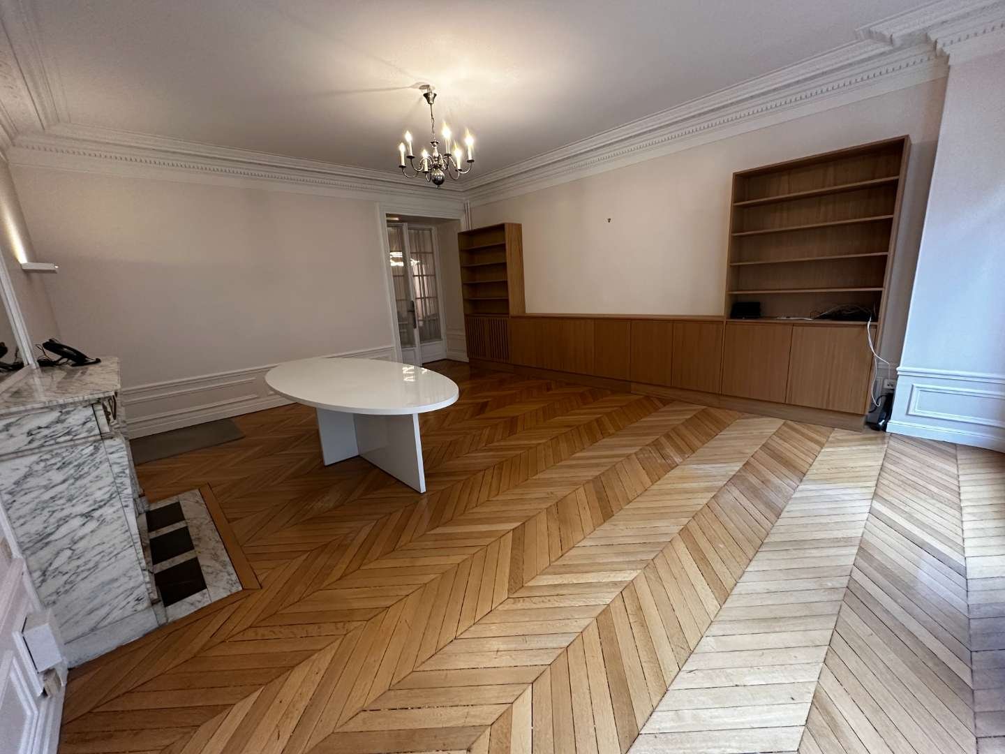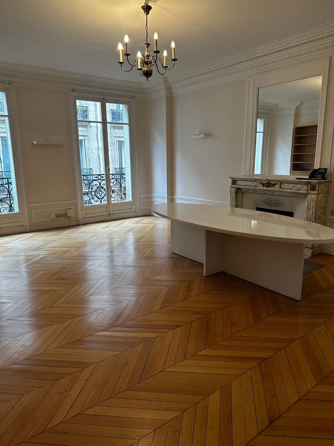 Un grand bureau ensoleillé de 34m2 donnant directement sur salle d'attente, porte-fenêtre ouvrant sur rue et balcon,