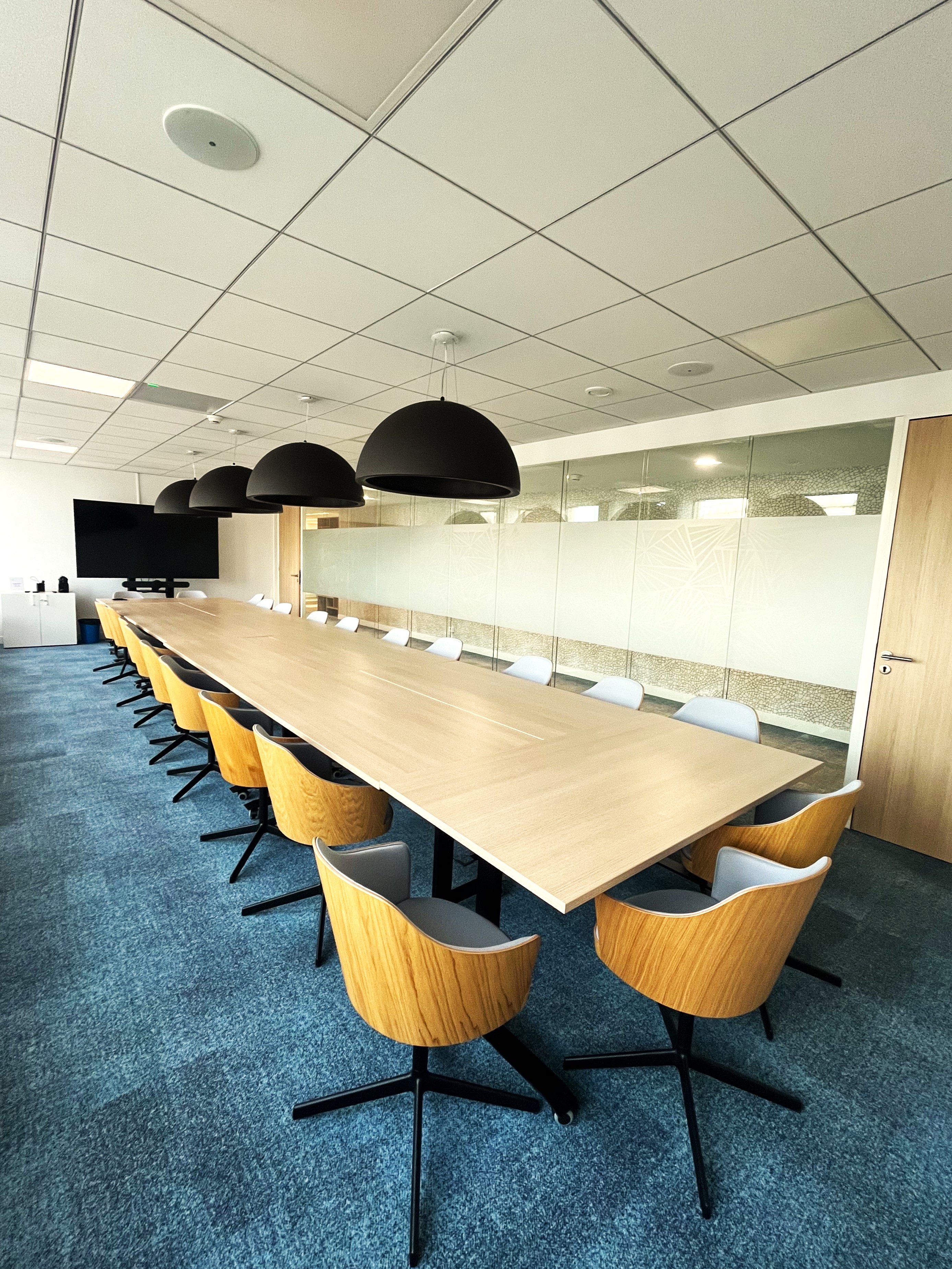 - 3 salles de réunion spacieuses, équipées de systèmes de visioconférence modernes.