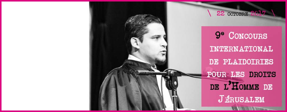 Organisé par l’Institut international des droits de l’Homme et de la paix et soutenu par le Consulat Général de France à Jérusalem, l’Ordre des avocats de Caen et l’Ordre des avocats de Palestine, cette 9ème édition aura lieu le dimanche 22 octobre 2017 à l’Université Al-Quds, à Jérusalem.