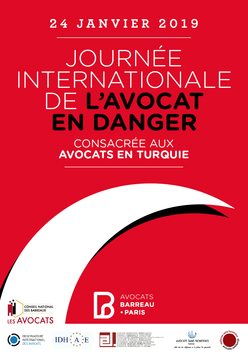 A l'occasion de la 9ème édition de la journée internationale de l’avocat en danger, la profession se mobilise pour soutenir les avocats turcs menacés et vous invite à vous rassembler le 24 janvier de 13h à 14h à proximité de l’ambassade de Turquie.
