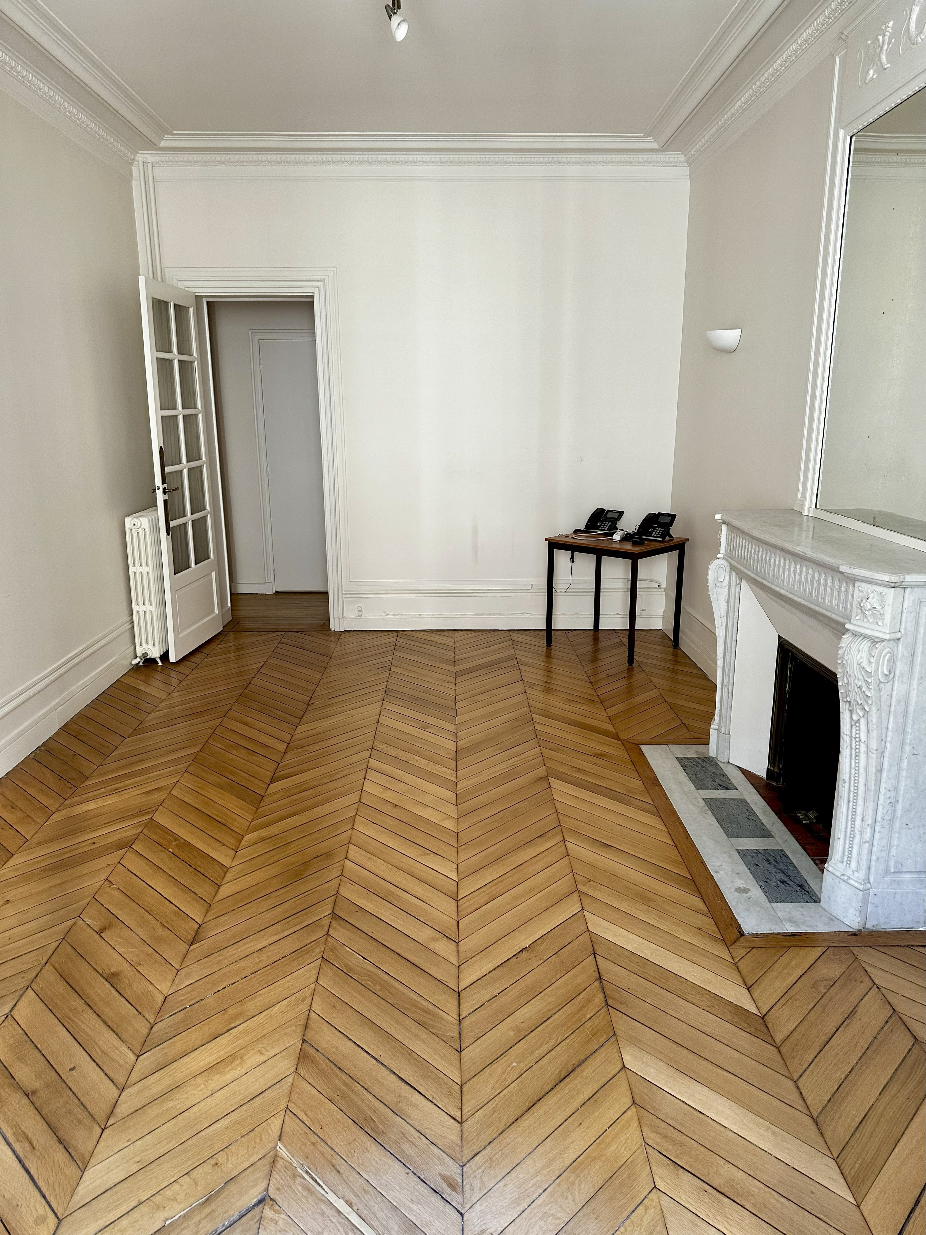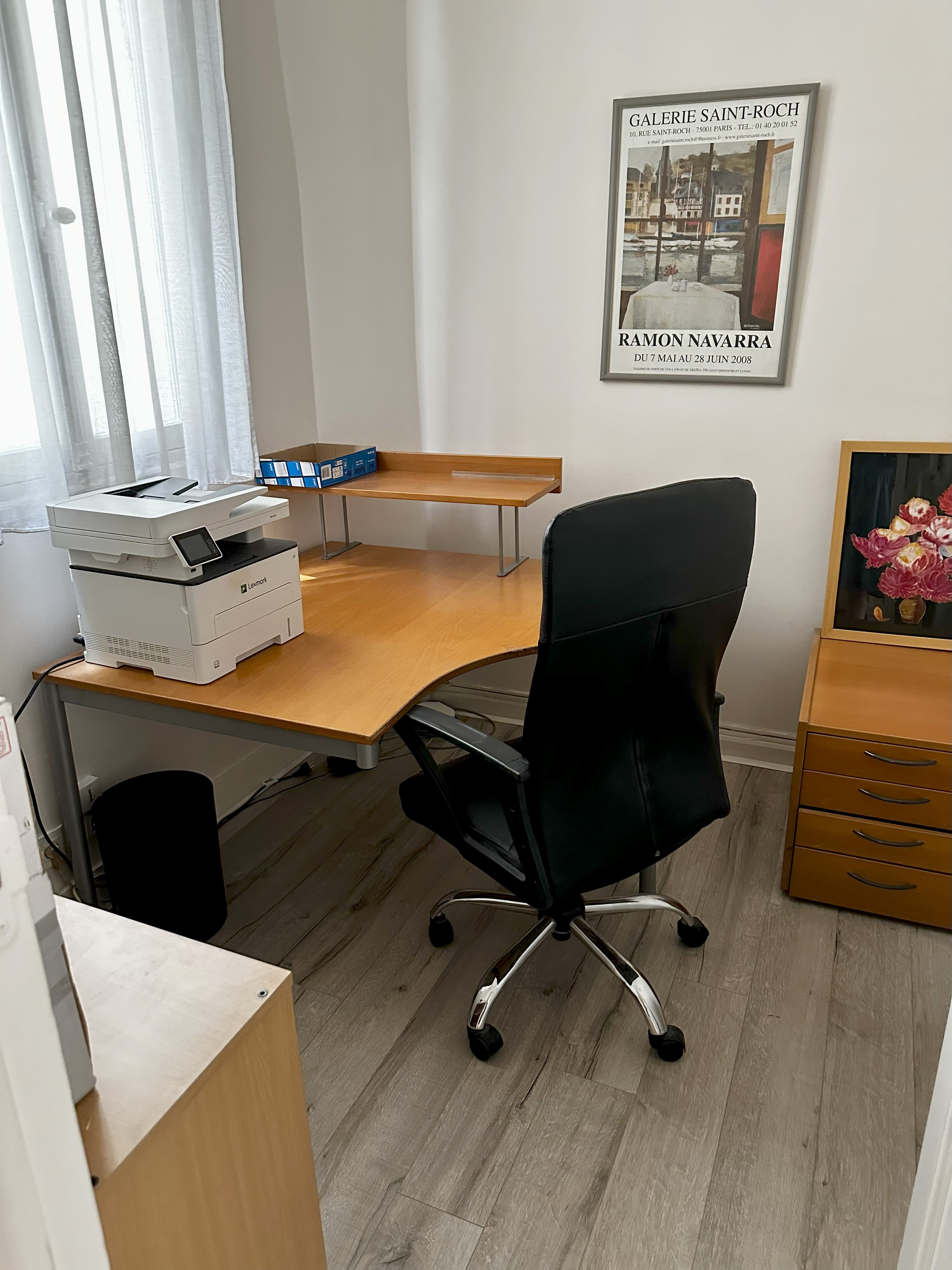 Un bureau de 22 m2 donnant directement sur salle d'attente, porte-fenêtre ouvrant sur rue et balcon