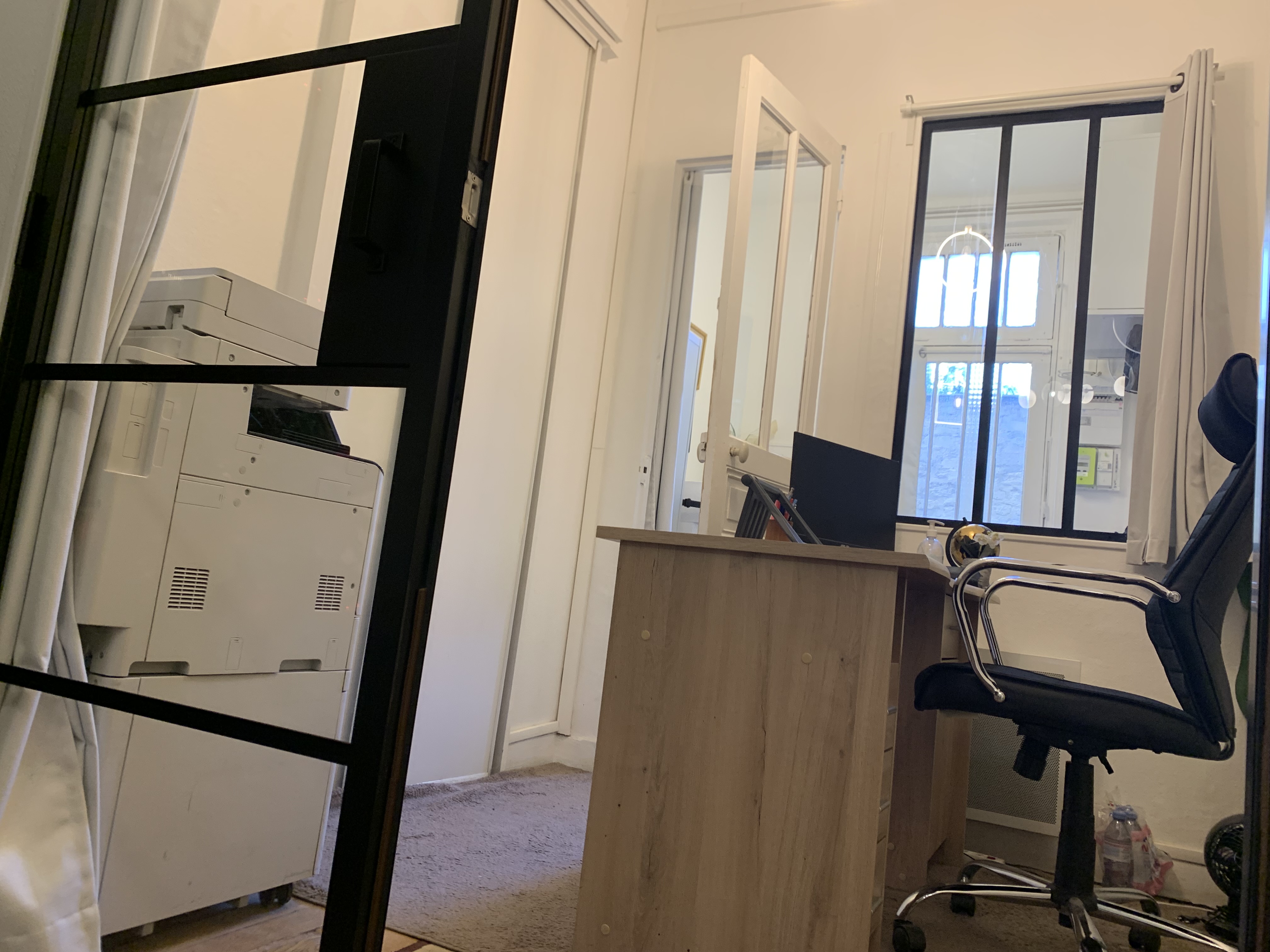- Superficie : environ 6 m2 + surface de l'armoire coulissante intégré au fond du mur (un bureau, une chaise et une imprimante)
