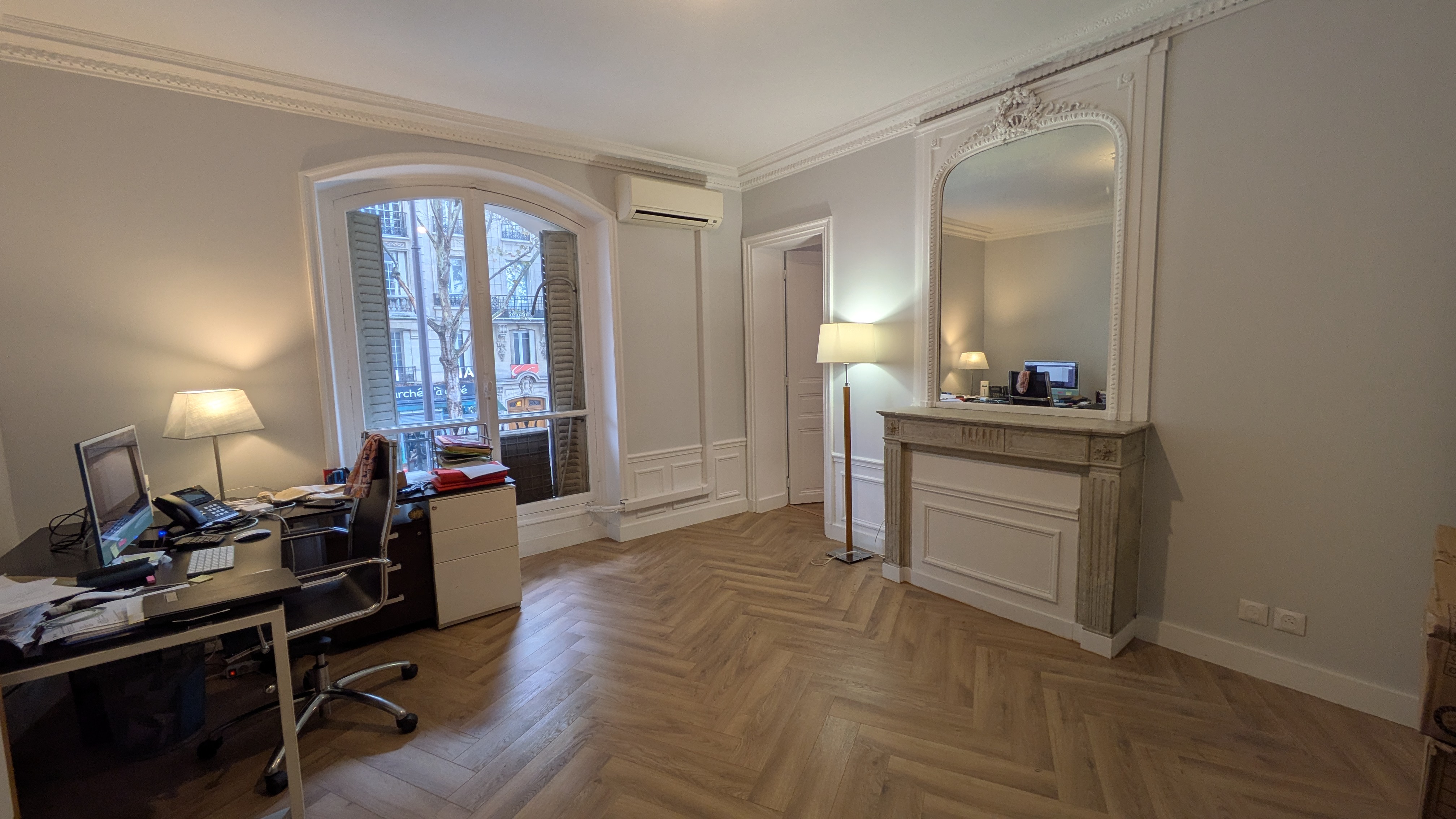Parquet, moulure, cheminée, climatisation, donnant sur le Palais.